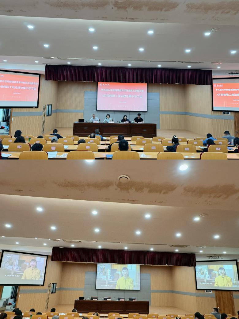 4月23日下午,我院在教20幢501报告厅召开4月份教职工政治理论集中学习会。直属党支部书记王淑莲主持。