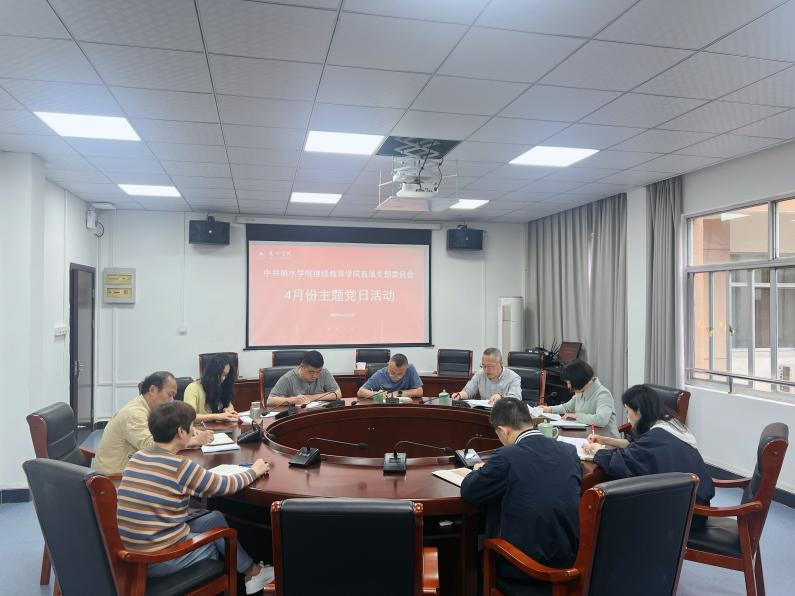 4月23日下午,我院在教21幢308会议室召开以“深入贯彻中央八项规定精神学习教育”为主题的4月份主题党日活动。直属党支部书记王淑莲主持。
