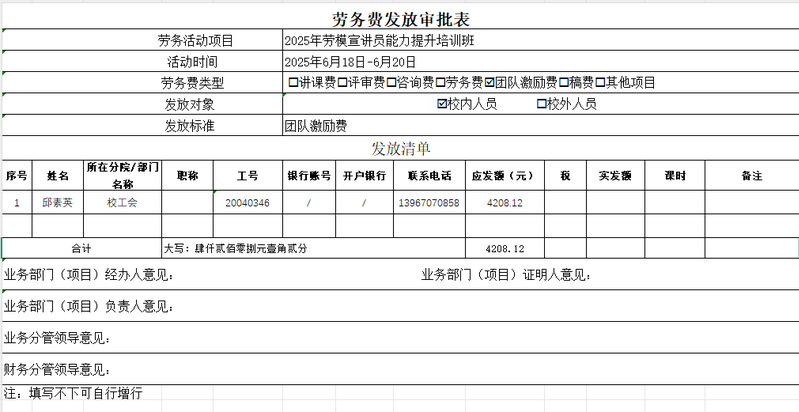 2025年劳模宣讲员能力提升培训班校内劳务费公示