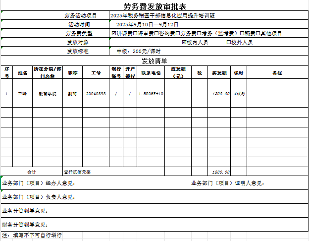 2025年税务稽查干部信息化应用提升培训班校内劳务费公示
