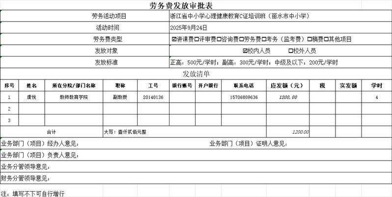 浙江省中小学心理健康教育c证培训班(丽水市中小学)校内劳务费公示