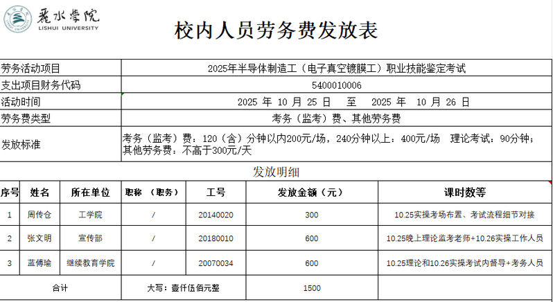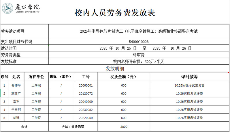 2025年半导体制造工(电子真空镀膜工)职业技能鉴定考试 校内劳务费发放公示