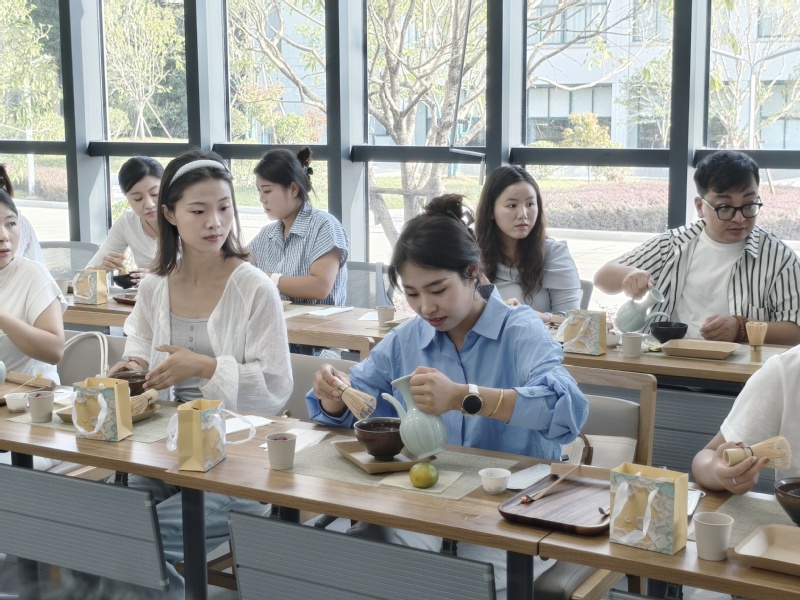 随后的宋代点茶表演将活动推向高潮。专业茶艺师通过“七汤点茶法”重现《茶录》古法,茶沫作画环节更令教师们赞叹不已。在随后的体验环节中,参与者以茶匙为笔、茶沫为纸,创作出精美的图案,亲身领略了非遗技艺的精妙。