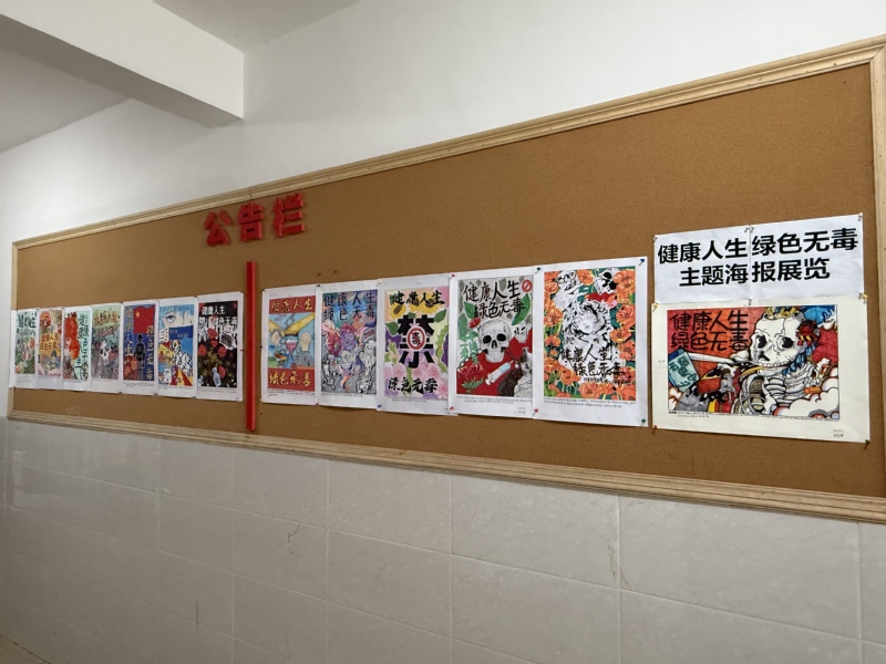 手绘作品展决心,传递禁毒力量。为让禁毒理念以更生动的形式传播,我院将禁毒教育与技能培养相结合,举办了“健康人生,绿色无毒”主题海报展。一幅幅色彩鲜明、创意十足的手绘作品在宣传长廊展出,吸引了众多师生驻足观看。同学们以画笔为媒介,以禁毒为主题,将毒品的危害、禁毒的决心融入作品之中,让师生在欣赏作品的同时,受到深刻的禁毒教育。
